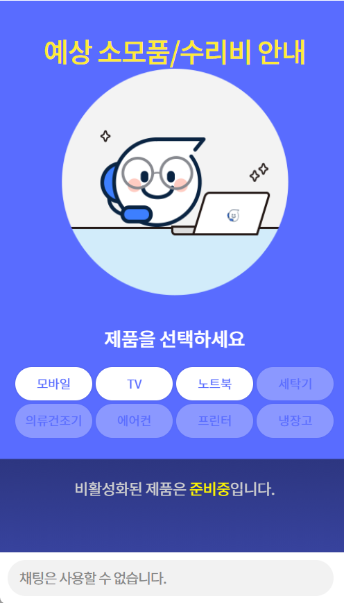 - 챗봇 대화창에서 '예상 소모품/수리비 안내'를 선택합니다.